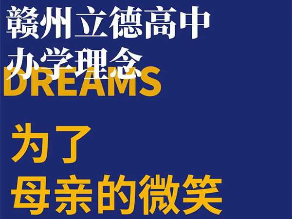 01学校简介·ABOUT US 立德高级中学是经教育行政管理部门批准设立的全日制普通高中。由赣州立德虔州文化教育有限公司投资创办,学校借鉴“临川教育教学模式”,引进多名省内外各学科名师及骨干教师任教,联合南昌南山艺校、日语教育名校胜川日语,全力打造立德文化教育品牌,学校针对不同生源素质在强化文化教